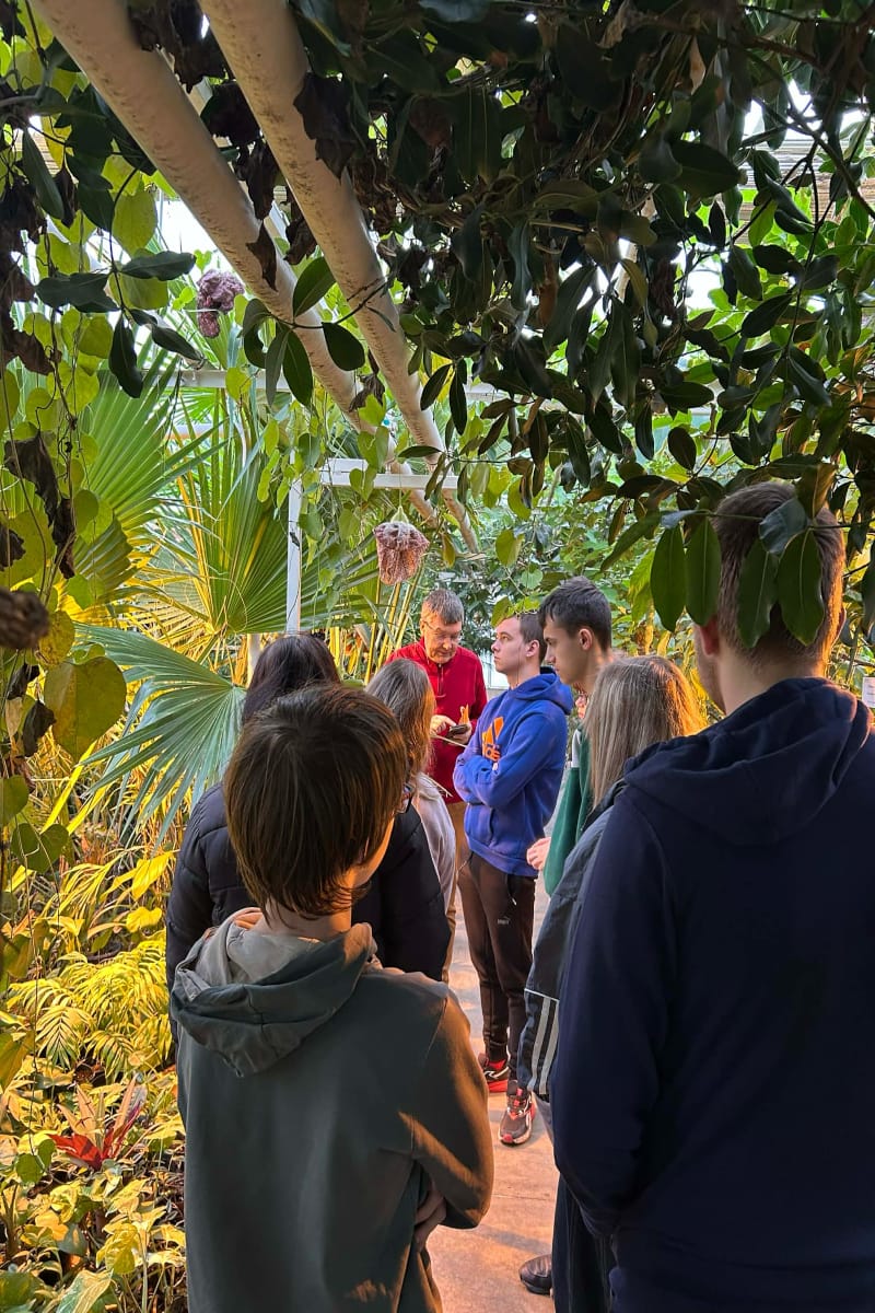 Dnia 18 listopada 2025 r. uczniowie z pierwszych klas Liceum Ogólnokształcącego i Technikum w Kowalu uczestniczyli w zajęciach odbywających się w szklarniach Ogrodu Wydziału Nauk Biologicznych i Weterynaryjnych.